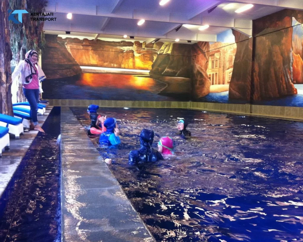 Kolam renang Floating & Hijab merupakan salah satu fasilitas unggulan yang memungkinkan para pengunjung, khususnya wanita berhijab, untuk menikmati waktu berenang dengan privasi yang terjaga di bagian indoor.