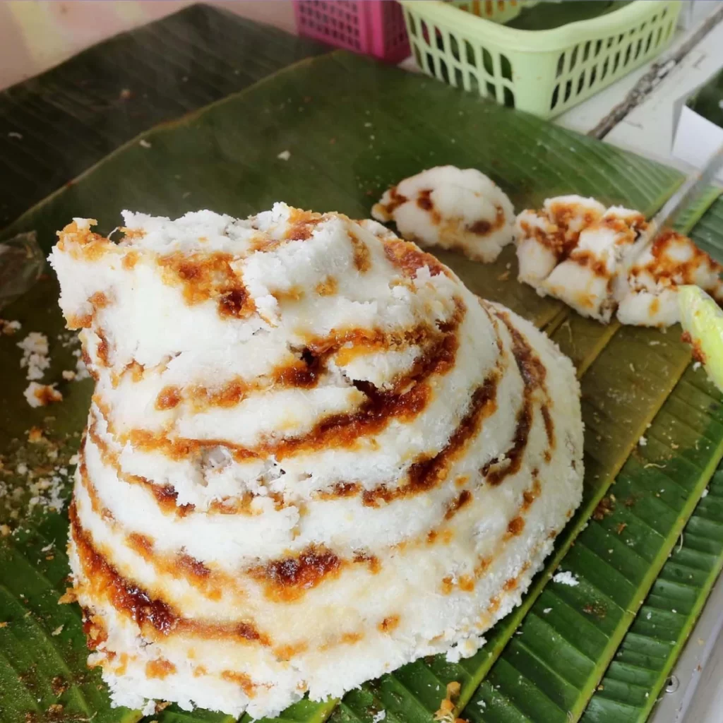 Berasal dari tepung ketan, gula merah, dan santan. Adonannya dibentuk mengerucut seperti gunung dan dikukus di atas daun pisang atau plat besi. Dengan tekstur lembut dan rasa manis yang menggugah selera.
