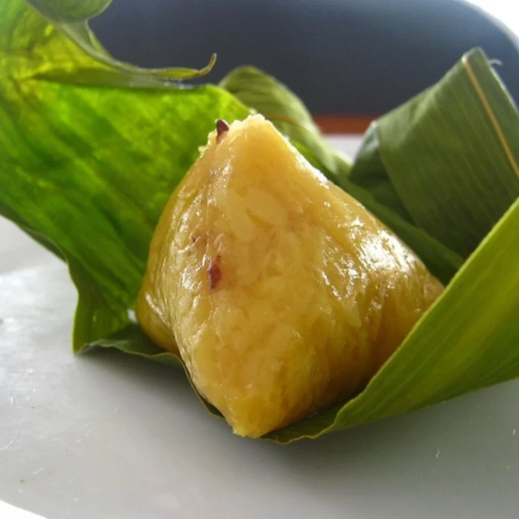 Terbuat dari beras ketan yang dipadatkan, dicampur dengan air abu atau air ki, lalu dibungkus dengan daun bambu sehingga mengeluarkan aroma yang khas.